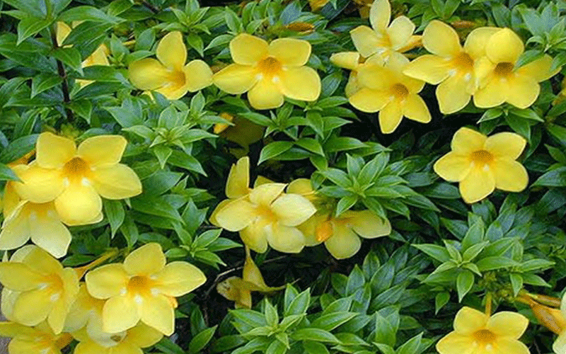 With exquisite butter-yellow flowers over glossy deep green foliage, they can work as a front-of-the-border plants or use them behind annuals, groundcovers or small perennials. Dwarf Allamandas grow at a moderate rate and you can easily keep them 2 to 2-1/2 feet tall. Plant in a full to partial sun location to get the most bloom.